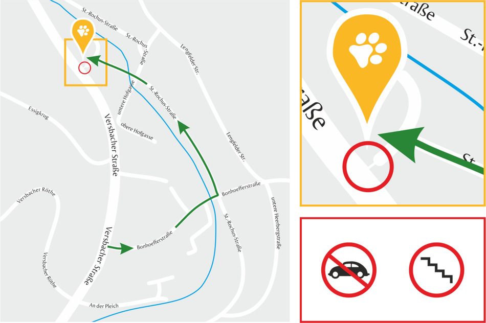 (von der Versbacher Straße aus ist der Zugang nur zu Fuß über sechs Stufen möglich)